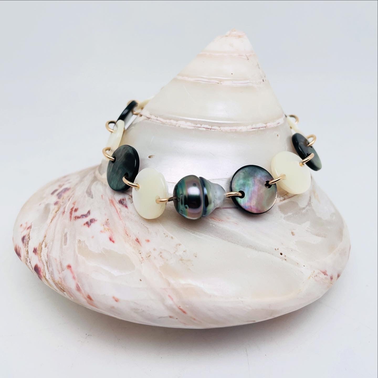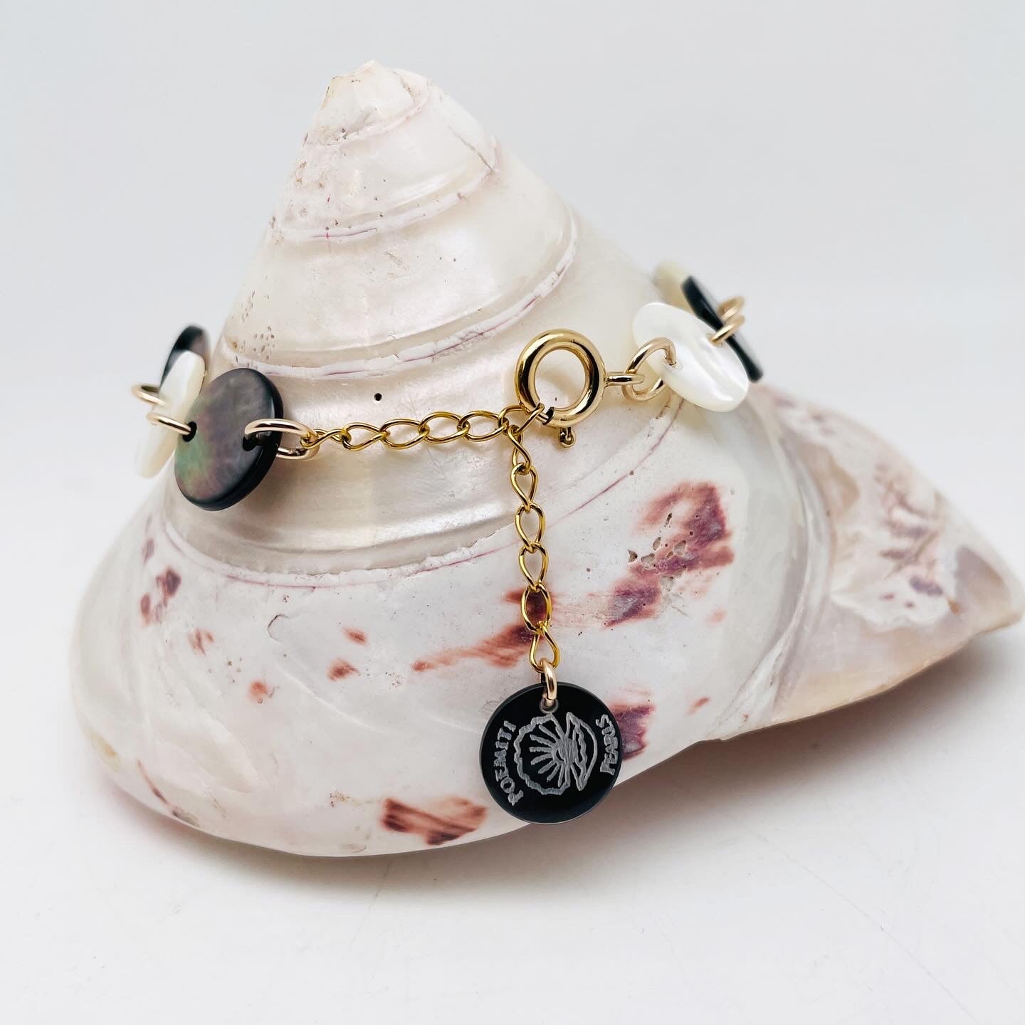 Les nacres blanches et noires s’entremêlent sur ce beau bracelet BLACK & WHITE . Réglable, il s'adapte à votre poignet ( tour de poignet de 16 à 20 cm ) Il pourra vous suivre dans toute votre journée et vos soirées. Création unique par POEMITI PEARLS